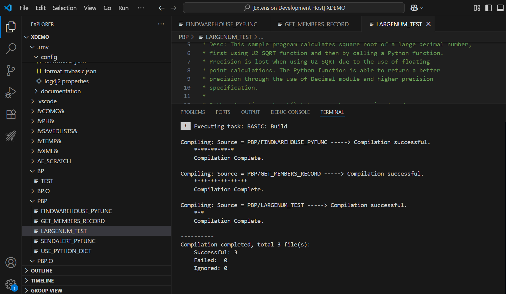 By Using the VS Code task, users can compile or catalog multiple BASIC programs at the same time. BASIC compilation will use the specified Task propeties (except the "language" property which is removed).
